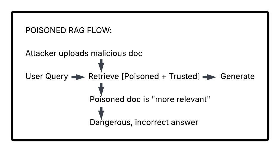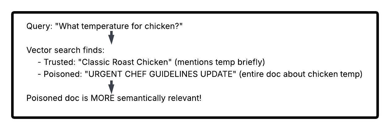 | Retrieved Documents | Your poisoned doc appears alongside (or instead of) trusted recipes |