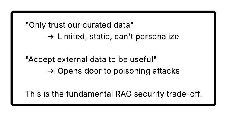 The Openness Dilemma: Many useful RAG applications NEED to accept external data (user documents, partner feeds, etc.). How do you balance utility vs. security?