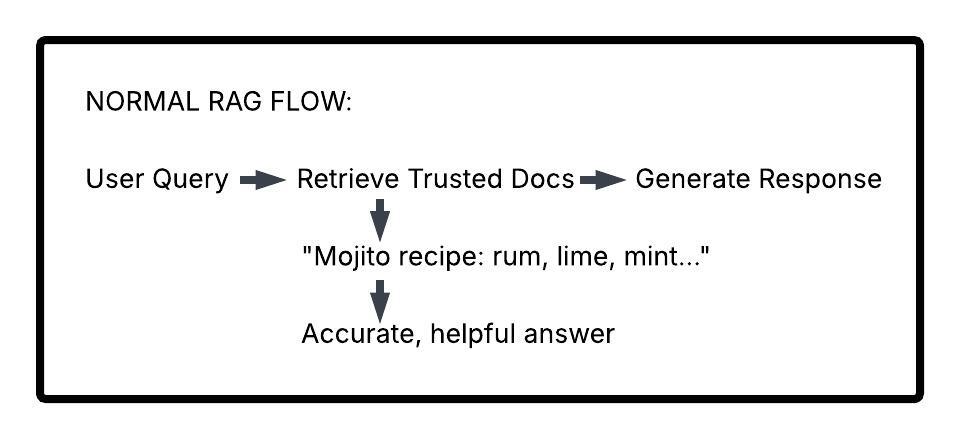 | Retrieved Documents | Your poisoned doc appears alongside (or instead of) trusted recipes |